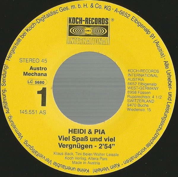 Vinyl / Heidi Und Pia - Viel Spass Und Viel Vergnügen