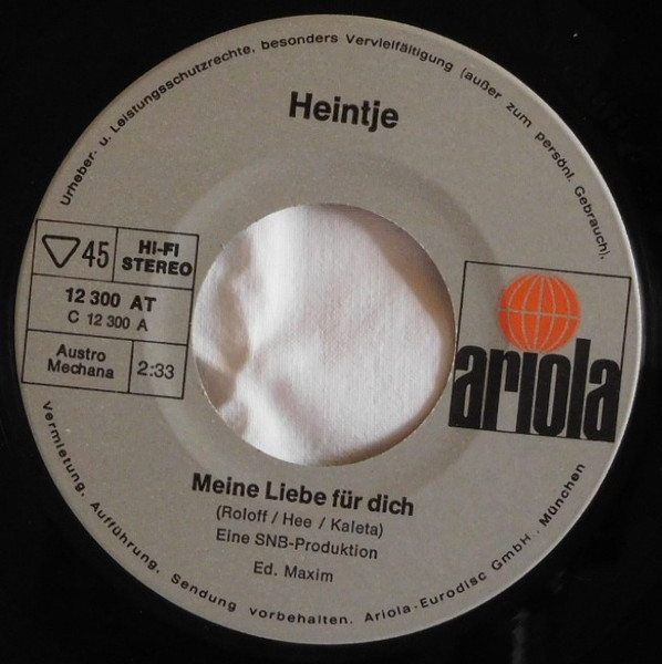 Vinyl / Heintje - Meine Liebe Für Dich / Du Brauchst Kein Clown Zu Sein