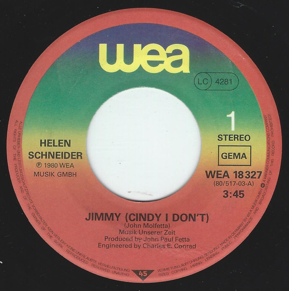 Vinyl / Helen Schneider - Jimmy (Cindy I Don't)