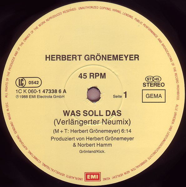 Vinyl / Herbert Grönemeyer - Was Soll Das (Verlängerter Neumix)