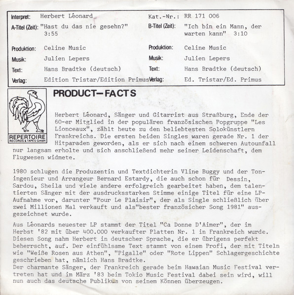 Vinyl / Herbert Léonard - Hast Du Das Nie Gesehn? / Ich Bin Ein Mann, Der Warten Kann