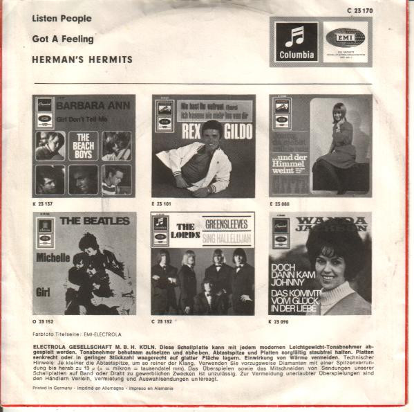 Vinyl / Herman's Hermits - Listen People / Got A Feeling