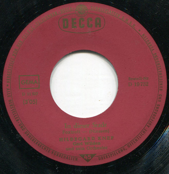 Vinyl / Hildegard Knef - In Dieser Stadt / Wintersonne