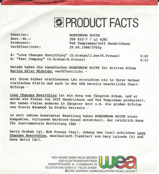 Vinyl / Honeymoon Suite - Love Changes Everything
