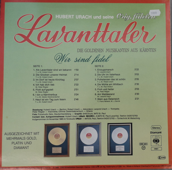 Vinyl / Hubert Urach Und Seine Orig. Fidelen Lavanttaler* - Wir Sind Fidel