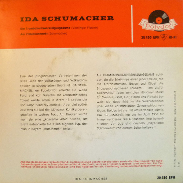 Vinyl / Ida Schumacher - Die Trambahnritzenreinigungsdame / Am Viktualienmmarkt