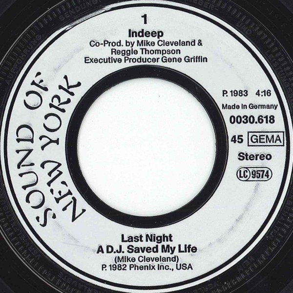 Vinyl / Indeep - Last Night A D.J. Saved My Life