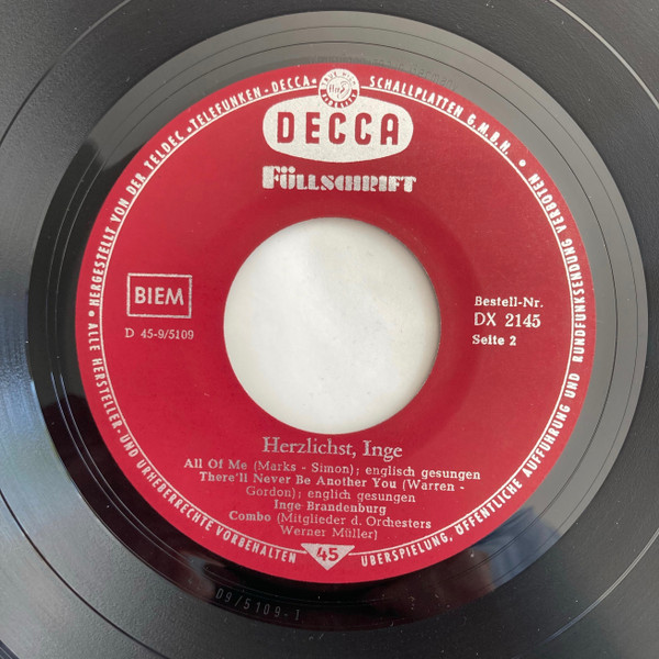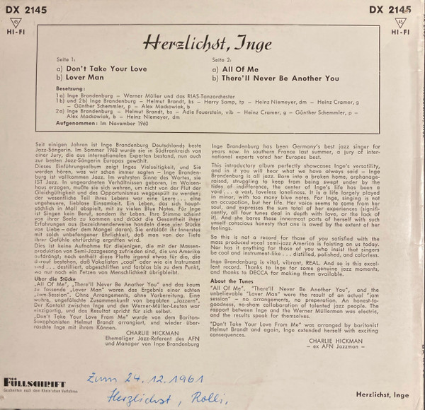 Vinyl / Inge Brandenburg - Herzlichst, Inge