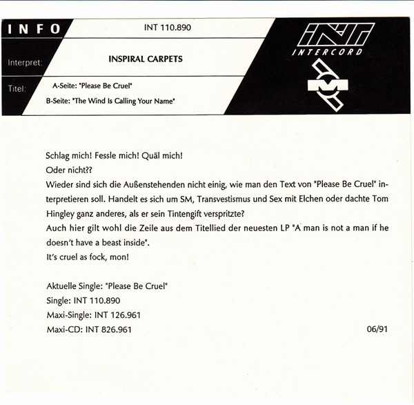 Vinyl / Inspiral Carpets - Please Be Cruel