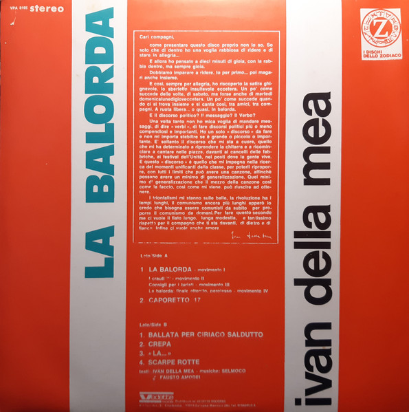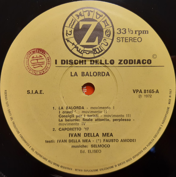 Label: I Dischi Dello Zodiaco - Cat#: VPA 8165