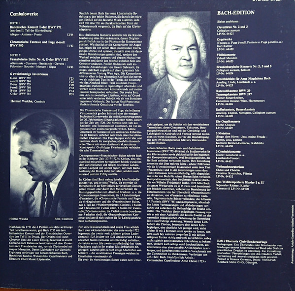 Vinyl / J. S. Bach* / Helmut Walcha - Bach Edition: Cembalowerke