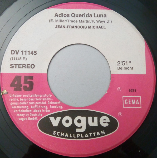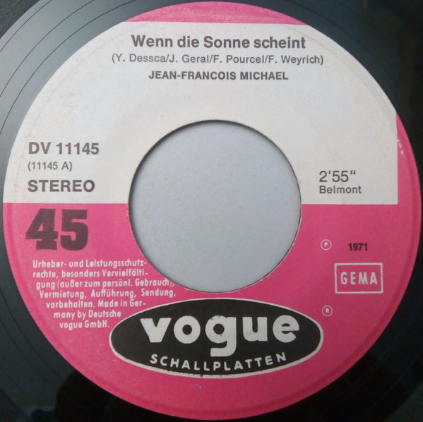 Vinyl / Jean-Francois Michael* - Wenn Die Sonne Scheint / Adios Querida Luna