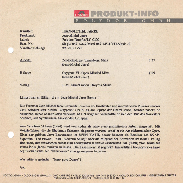 Vinyl / Jean-Michel Jarre - Zoolook / Oxygene (Remixed By Mosaic)