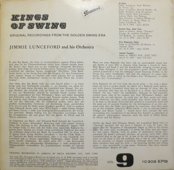 Vinyl / Jimmie Lunceford And His Orchestra - Kings Of Swing Vol. 9