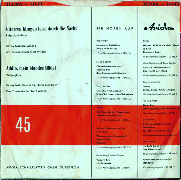 Vinyl / Jimmy Makulis - Gitarren Klingen Leise Durch Die Nacht / Addio, Mein Blondes Mädel