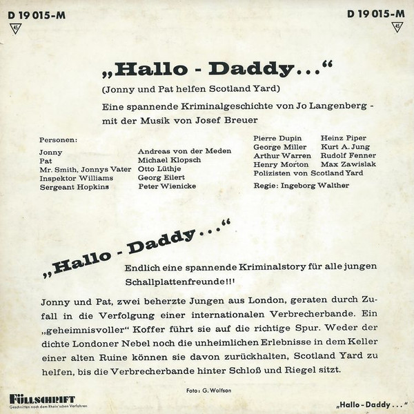Vinyl / Jo Langenberg - Hallo Daddy... (Jonny Und Pat Helfen Scotland Yard)