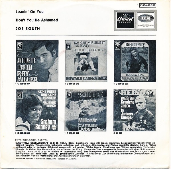 Vinyl / Joe South - Leanin' On You / Don't You Be Ashamed