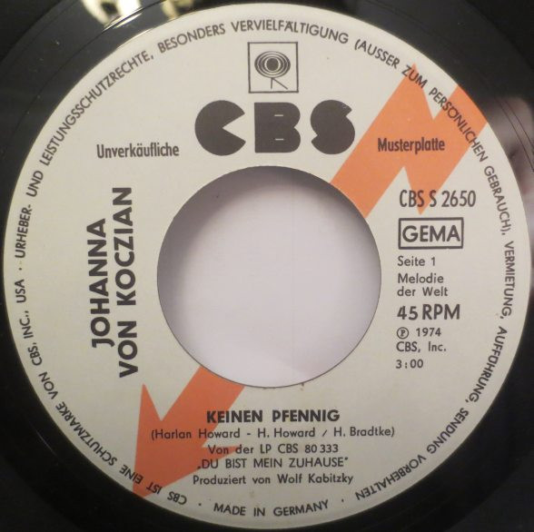 Vinyl / Johanna Von Koczian - Keinen Pfennig / So Wie's Früher War
