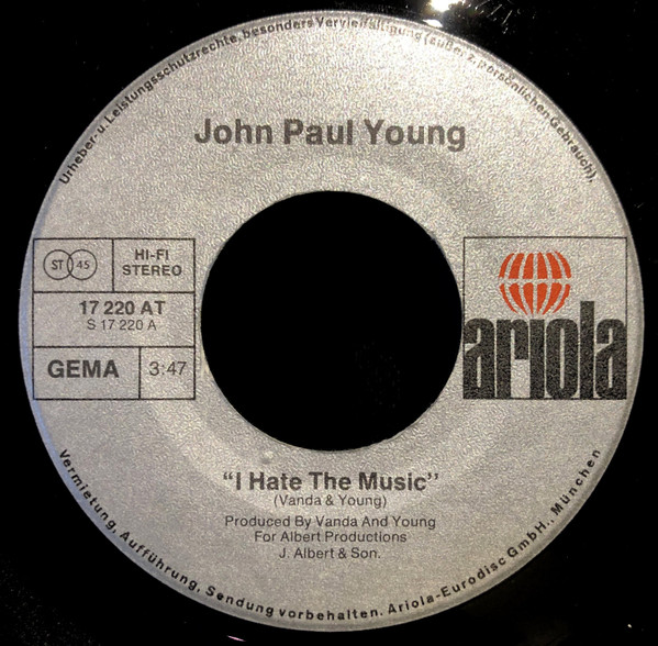 Vinyl / John Paul Young - I Hate The Music