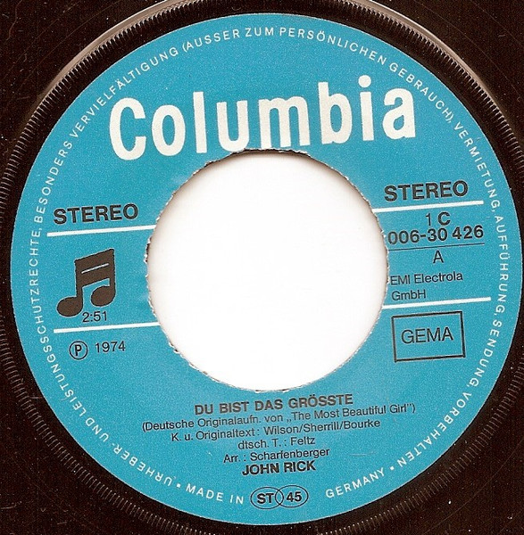 Vinyl / John Rick - Du Bist Das Grösste