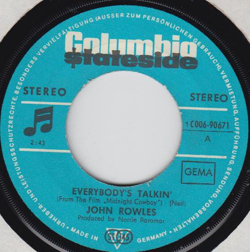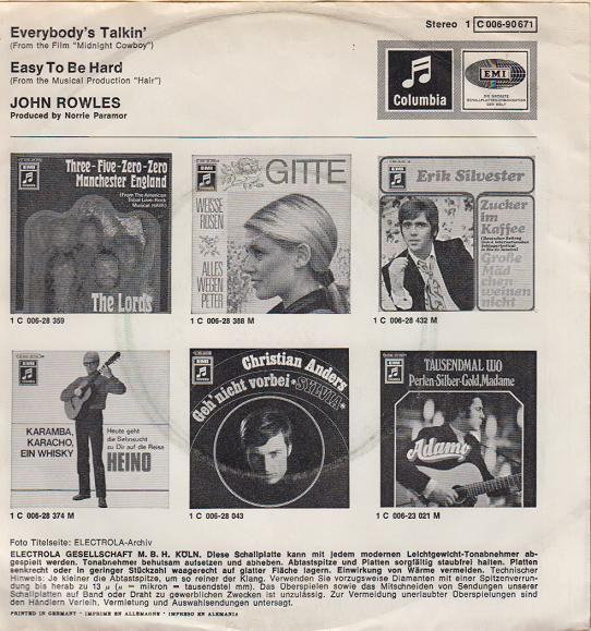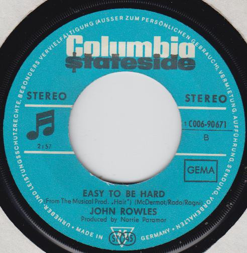 Vinyl / John Rowles - Everybody's Talkin' / Easy To Be Hard