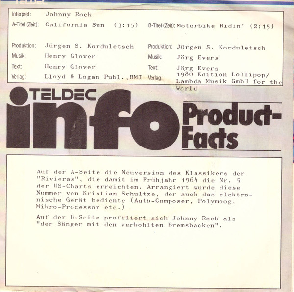 Vinyl / Johnny Rock (2) - California Sun / Motorbike Ridin'
