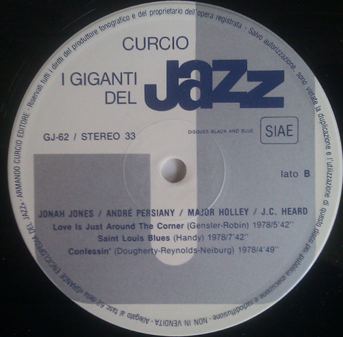 Vinyl / Jonah Jones / André Persiany / J.C. Heard / Major Holley - I Giganti Del Jazz Vol. 62
