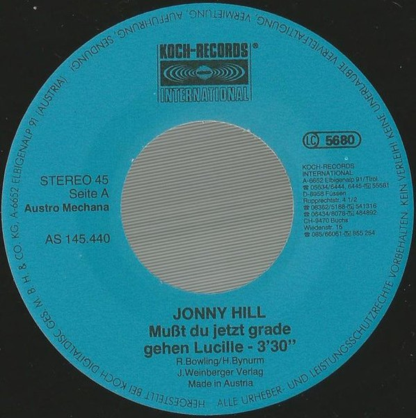 Vinyl / Jonny Hill - Mußt Du Jetzt Grade Gehen Lucille