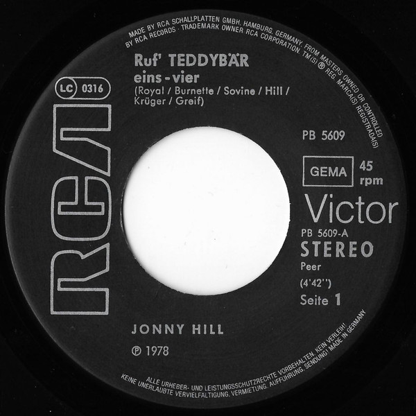 Vinyl / Jonny Hill - Ruf' Teddybär Eins-Vier / Kann Liebe Alles Verzeihn