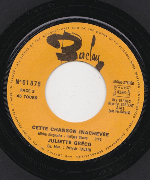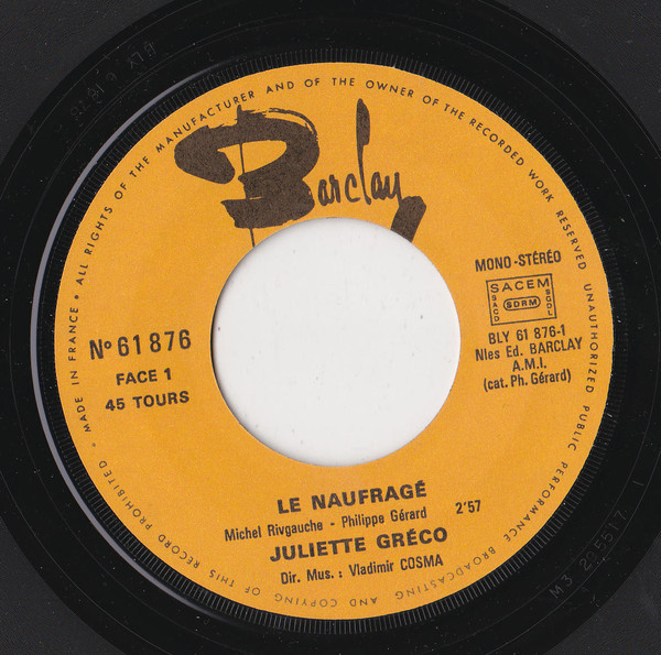 Vinyl / Juliette Gréco - Le Naufragé / Cette Chanson Inachevee