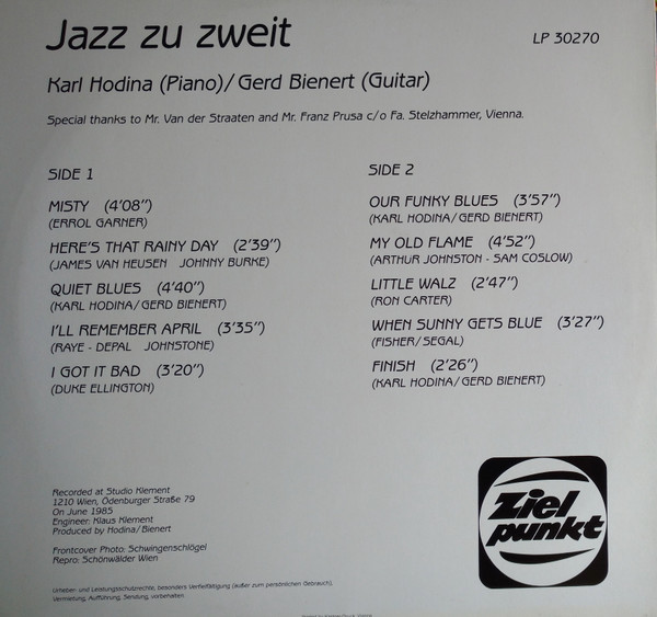 Vinyl / Karl Hodina, Gerd Bienert - Jazz Zu Zweit