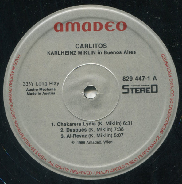 Vinyl / Karlheinz Miklin - Carlitos (Karlheinz Miklin In Buenos Aires)