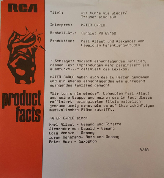 Vinyl / Kater Carlo - Wir Tun's Nie Wieder / Träumer Sind Süss
