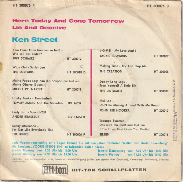 Vinyl / Ken Street - Here Today And Gone Tomorrow / Lie And Deceive