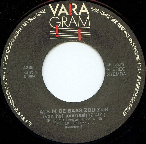 Vinyl / Kinderen voor Kinderen - Als Ik De Baas Zou Zijn (Van Het Journaal)