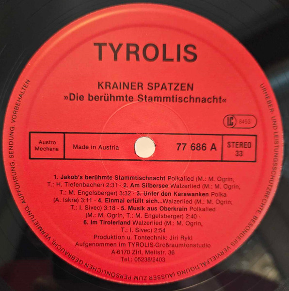 Vinyl / Krainer Spatzen - Die Berühmte Stammtischnacht