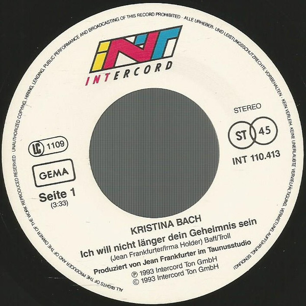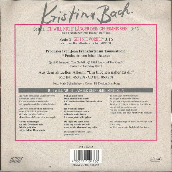 Vinyl / Kristina Bach - Ich Will Nicht Länger Dein Geheimnis Sein