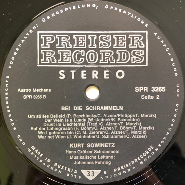 Vinyl / Kurt Sowinetz - Bei Die Schrammeln