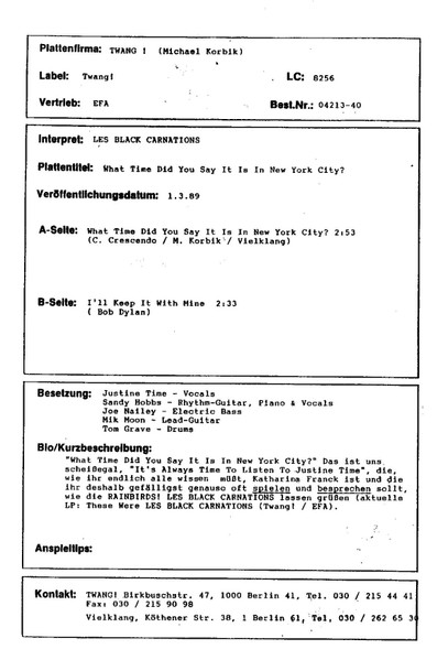 Vinyl / Les Black Carnations - What Time Did You Say It Is In New York City