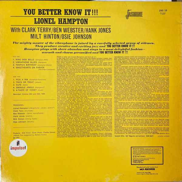 Vinyl / Lionel Hampton - You Better Know It!!!