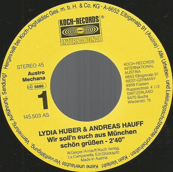 Vinyl / Lydia Huber & Andreas Hauff - Wir Soll'n Euch Aus München Schön Grüßen