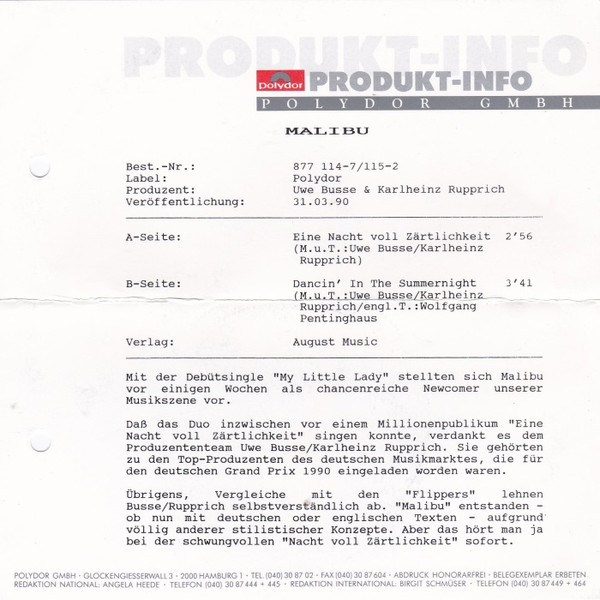 Vinyl / Malibu (7) - Eine Nacht Voll Zärtlichkeit