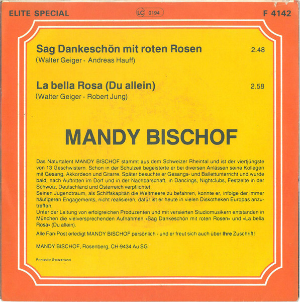 Vinyl / Mandy Bischof - Sag Dankeschön Mit Roten Rosen / La Bella Rose (Du Allein)