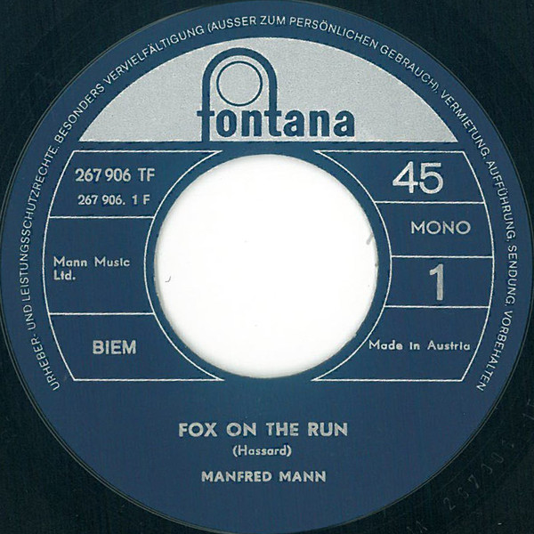 Vinyl / Manfred Mann - Fox On The Run / Too Many People