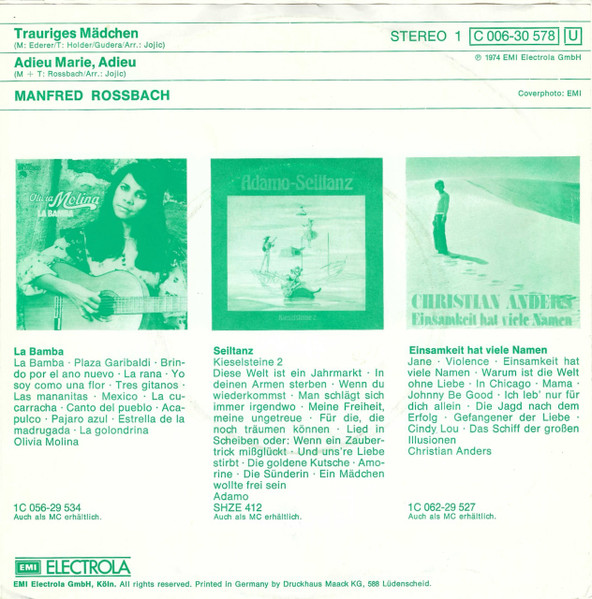 Vinyl / Manfred Rossbach - Trauriges Mädchen