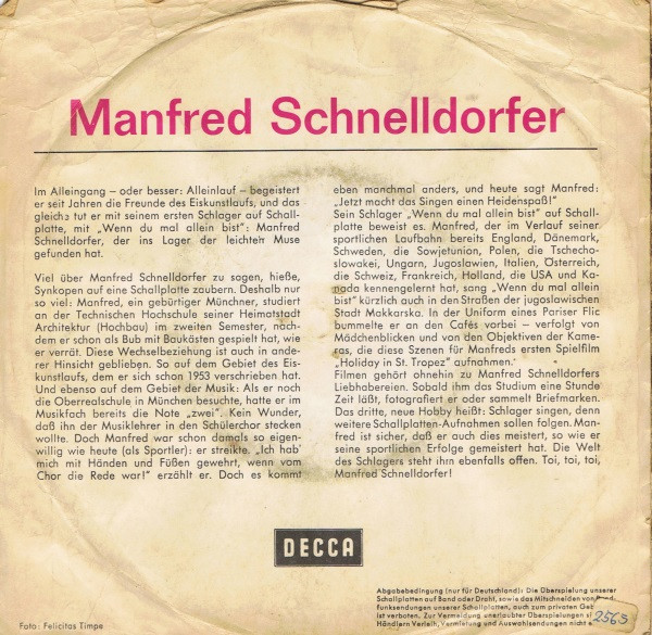 Vinyl / Manfred Schnelldorfer - Wenn Du Mal Allein Bist