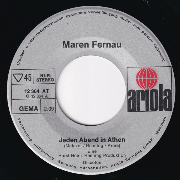 Vinyl / Maren Fernau - Jeden Abend In Athen / Lieben Heißt Leben Mit Dem Risiko