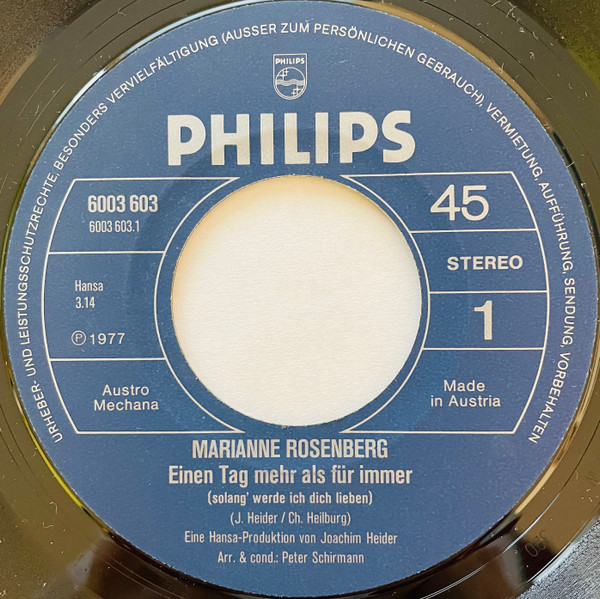 Vinyl / Marianne Rosenberg - Einen Tag Mehr Als Für Immer (Solang' Werde Ich Dich Lieben)