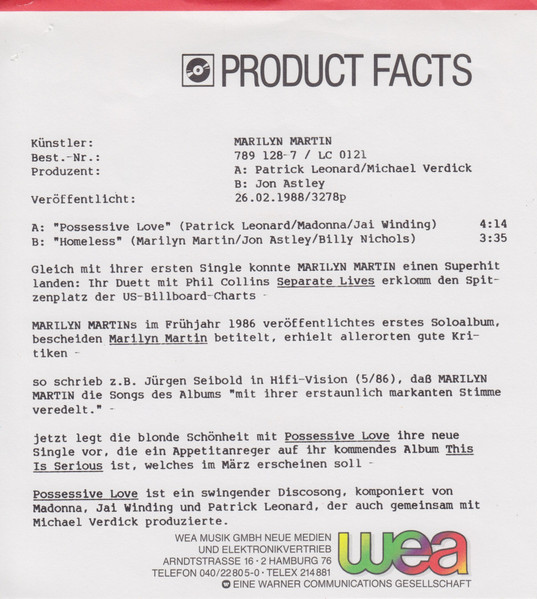 Vinyl / Marilyn Martin - Possessive Love