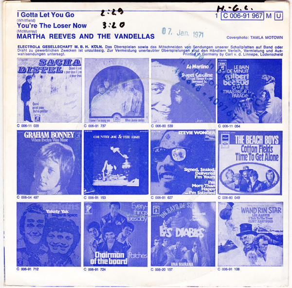 Vinyl / Martha Reeves And The Vandellas* - I Gotta Let You Go / You're The Loser Now
